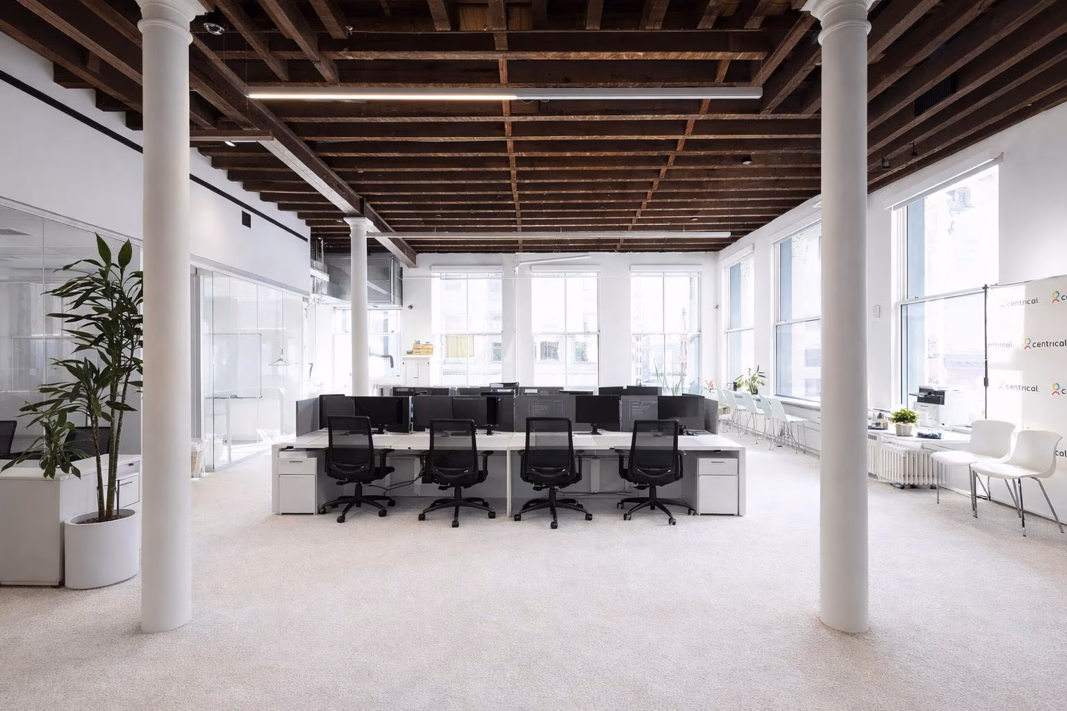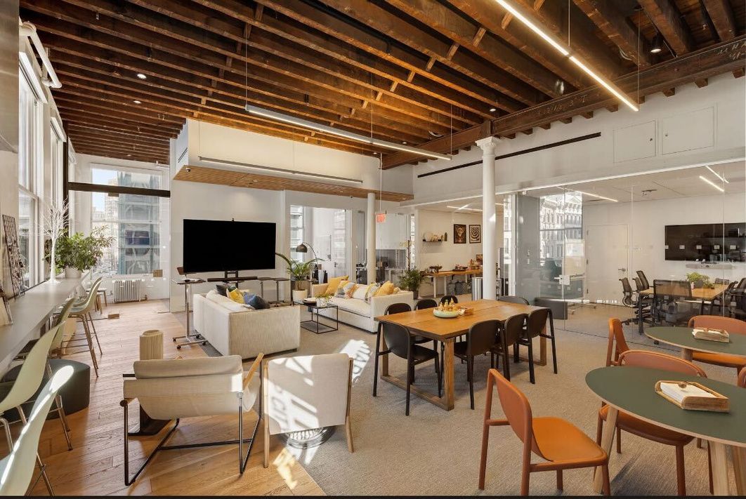 Fully built and furnished office space in the heart of SoHo. Beautifully built with 80+ workstations with room to densify, 4 call rooms, and 10-12 meeting rooms/ offices. Corner building with super high ceilings and interesting architectural detail throughout.